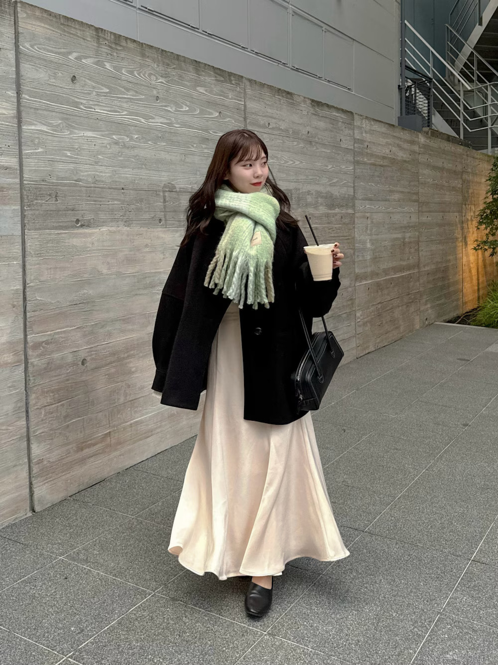 圍巾除了能保暖之外,其實也可當作配件使用,像是拿在手上或是隨性披掛都很合適,簡單不繁複的穿衣巧思,為冬季點亮與眾不同的層次焦點,衣服穿上開襟衫、長裙、長版針織,立即連結知性與優雅的日系迷人印象。