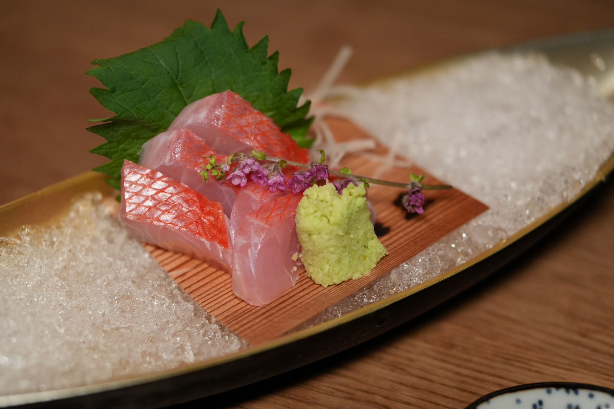 除了名字討喜,金目鯛的外觀也極具華貴感。牠們棲息於水深 200 公尺以上的深海,擁有閃耀金光的大眼睛與鮮豔紅色的體色。而在口感上,金目鯛屬於油脂極為豐富的白肉魚,肉質細膩且帶有獨特的甘甜風味,因此在高級料理店中一直是被爭相使用的夢幻食材。