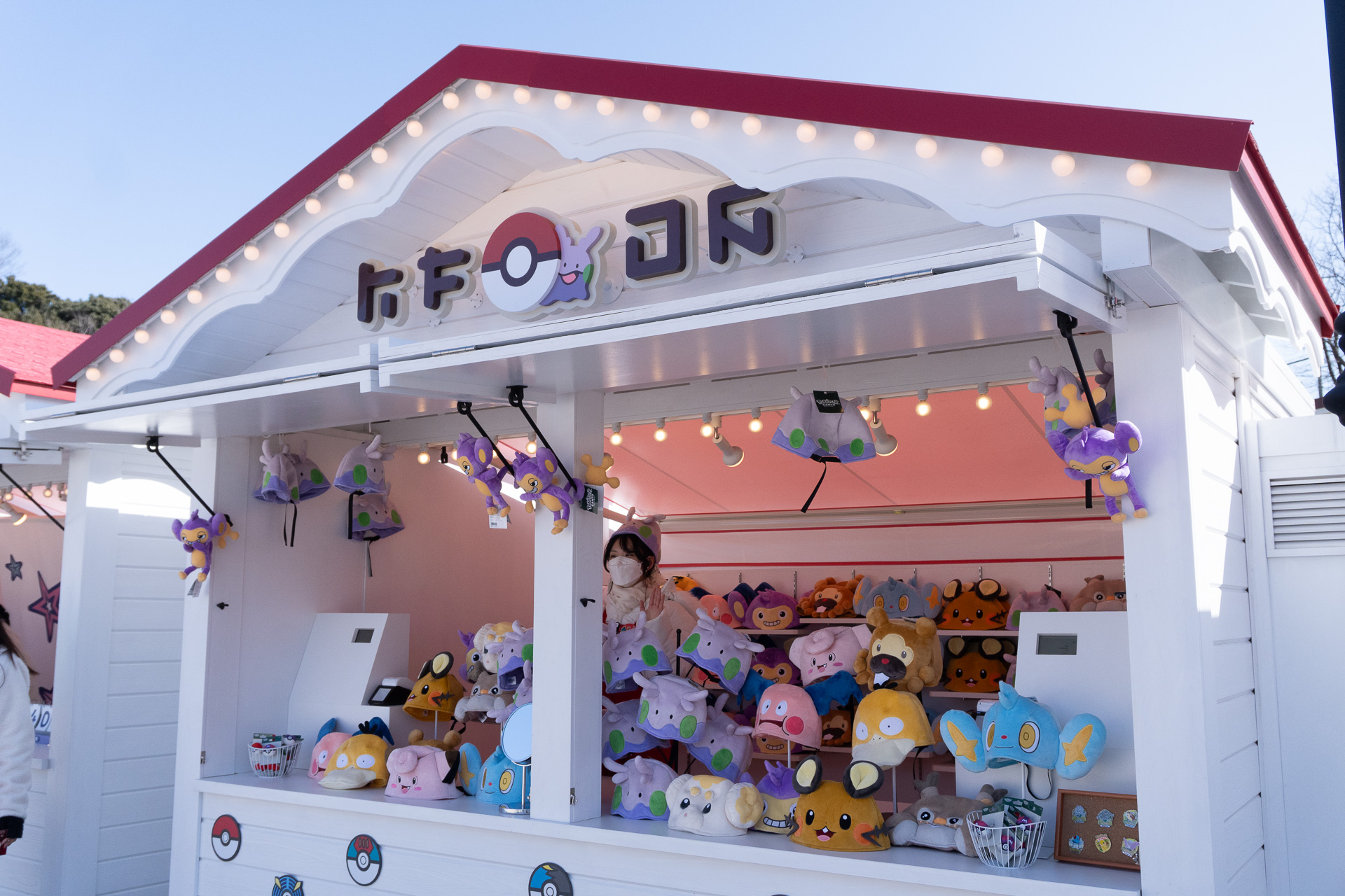 進入園區後,可看到「寶可夢發燒友商店」販售各類限定商品,需使用官方APP抽整理券入場。街道兩側的訓練家市集販售各種商品,園區內也有販售主題美食的「皮卡丘飯糰屋」「伊布咖啡店」等店鋪,能夠吃到各種寶可夢主題美食。