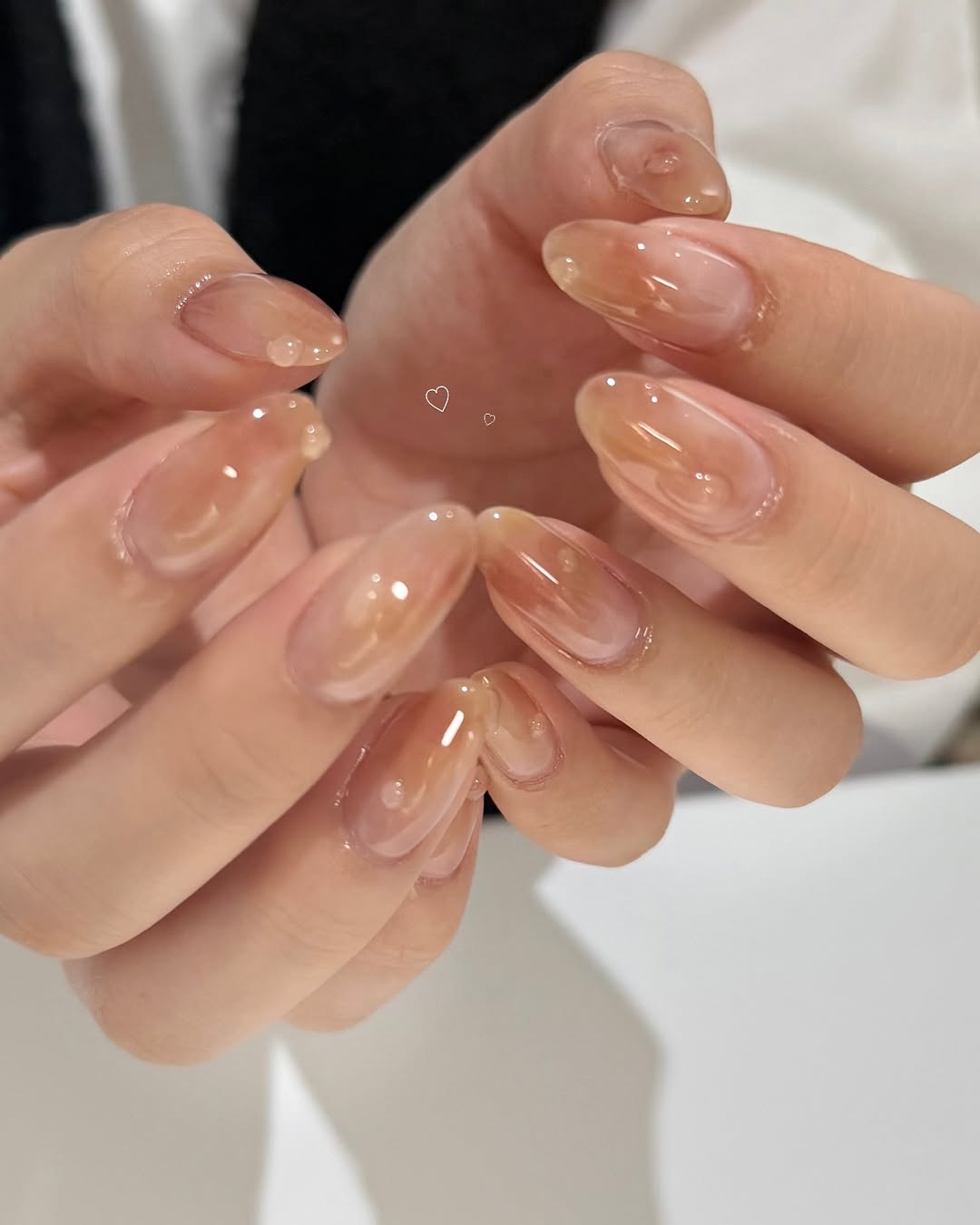 運用透明底色 + 粉色系混合的淡色指彩,彷彿自然甲片顏色的渲染風格,呈現若有似無的美感,推薦給喜歡低調卻又想為指甲點綴層次的你,可甜可鹽的造型,輕鬆打造令人為之亮的氣息。