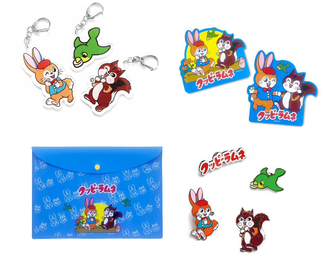 Kuppy Ramune汽水糖包裝上的Kuppy與Ramu,不再侷限於只是包裝上的印刷,這兩個吉祥物角色也開始作為「角色商品」登場,推出了吊飾、別針、貼紙以及文具等雜貨周邊。