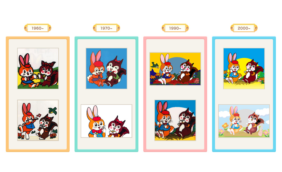 印在汽水糖包裝袋上的這兩隻動物,一隻是兔子Kuppy (クッピー),另一隻則是松鼠Ramu(ラム),請來了漫畫家「太田じろう」擔綱角色設計,那活潑可愛的風格與一眼就能讓人認出的角色形象,也成為了Kuppy Ramune汽水糖的代表吉祥物。