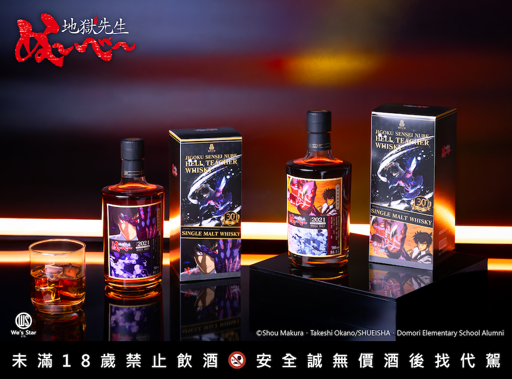本次企劃重點分為兩大收藏亮點,重星戰略與鑫夢想共同企劃,取得日本官方授權,推出全球限量《靈異教師神眉30週年紀念威士忌》地獄款/鬼手款,更是粉絲圈討論度最高的商品之一。地獄款以深焙泥煤與深色系瓶身呈現異界陰鬱質感;鬼手款則結合封印之手手勢融入瓶身,象徵「守護之力」與主人翁鵺野鳴介的精神意象。兩款皆以限定量推出,瓶身兼具展示性與收藏性,今年粉絲必收的紀念酒款。