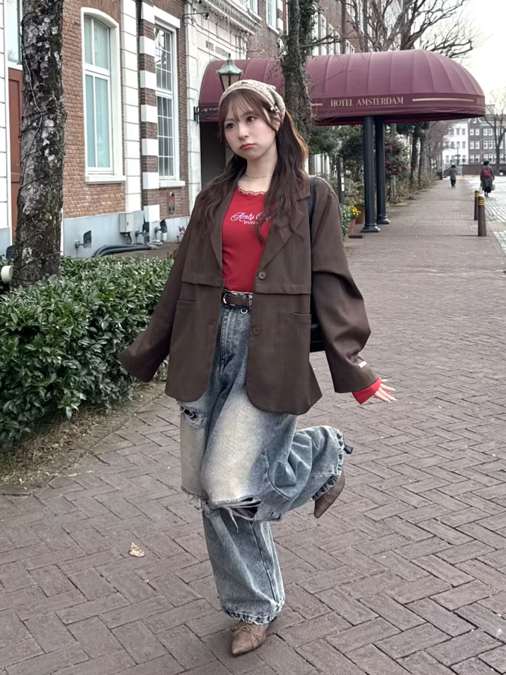 紅色向來給人喜洋洋的印象,非常適合運用在開工或者新季節轉換時刻,如果擔心穿紅色會顯老氣的話,選擇以紅 + 咖啡便能分散搶眼視覺,例如紅色字母 TEE 與咖啡色西裝外套混搭,看起來不會太突兀反而很顯高級氛圍,或者將紅色當作配角點綴也很好看加分。