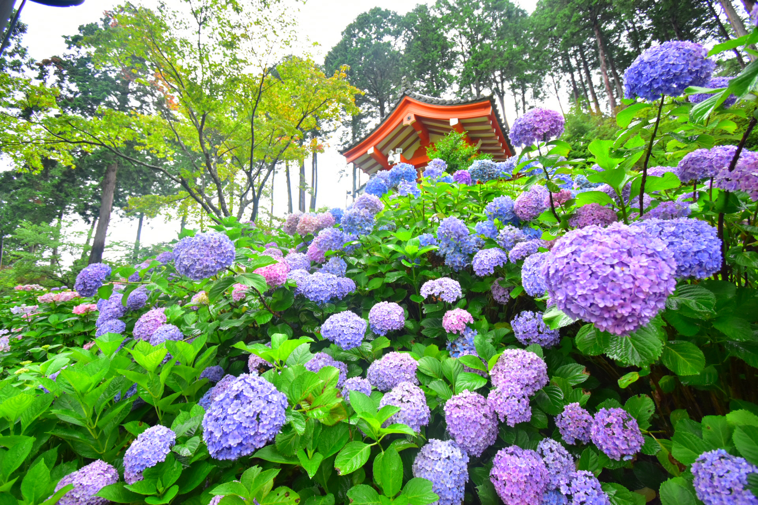 三室戶寺位於京都府,是京都府一座從平安時代建造至今的古老寺廟,與此同時,它也是京都觀賞繡球花的最佳景點之一。三室戶寺的庭園占地廣大,在5000坪的土地上種滿了超過1萬株的繡球花,其數量之多讓此處成為「日本三大繡球花名所」之一。