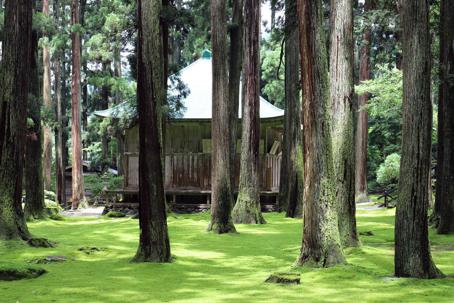 平泉寺白山神社的地面長滿了翠綠美麗的苔蘚,每當6月梅雨季,綿綿細雨讓苔蘚更加漂亮,若是在雨後的早晨來訪,你將可以看到苔蘚在陽光的照射下閃閃發光,在加上周遭超過千年樹齡的杉樹林,營造出莊嚴寂靜,卻又美麗動人的迷人景色,讓你彷彿身處另一世界,絕對能成為特別的體驗。
