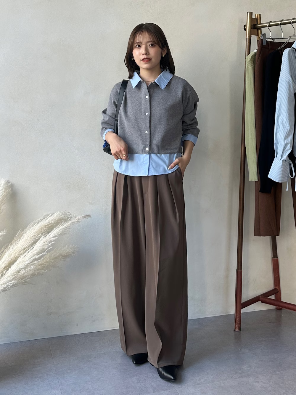 通勤約會皆可穿的巧克力色西裝休閒長褲,百搭好駕馭又不挑人穿,成為許多日本女生內心的最愛單品之一,融入巧克力色調,加乘出低調簡約的率性質感,上衣不論選搭露肩上衣或者襯衫疊搭,使上班約會都能擁有迷人的穿搭魅力。
