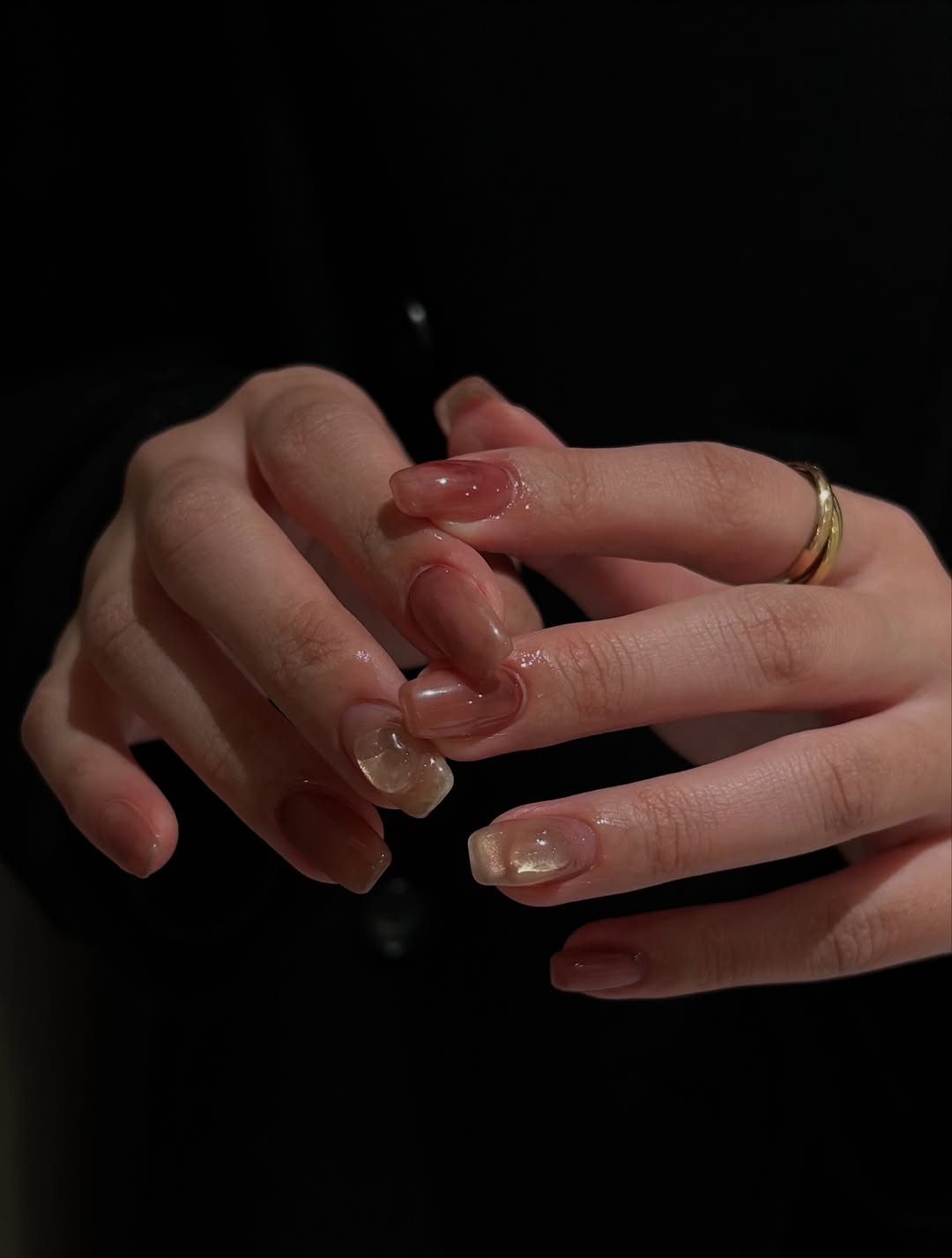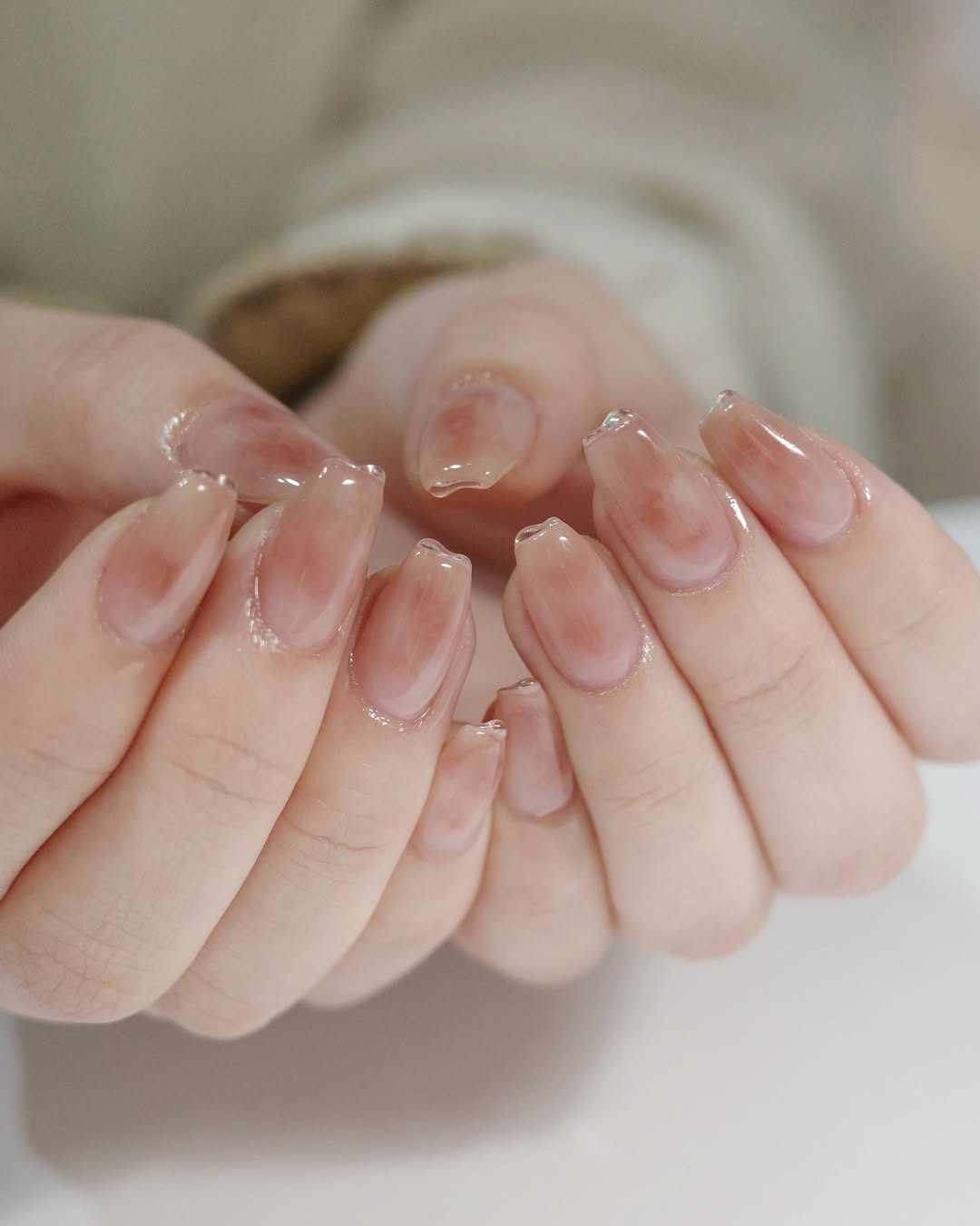 平時喜歡低調簡約指彩風格的話,不妨嘗試以粉色漸層為指尖點綴質感魅力,首先運用透明色指甲油打底,再選擇藕粉、淡粉製作疊擦便可完成,彷彿像自己甲色般透出的紅潤感,營造簡單又好感的視覺魅力。