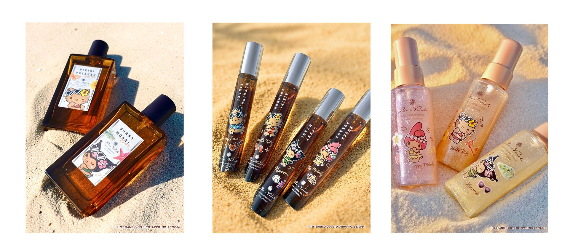 此次與三麗鷗角色聯名的香氛包含「Pua Nanala」的3款人氣香氛,以及1款全新香調。新加入的「Bikini Plaunu」(ビキニプラウヌ)是為了呼應這次「日曬肌膚」主題而首次亮相的香氛。所有香氛都從海邊景色中獲得靈感,帶來最適合夏季的舒適香調。
