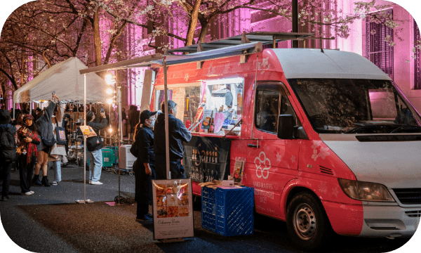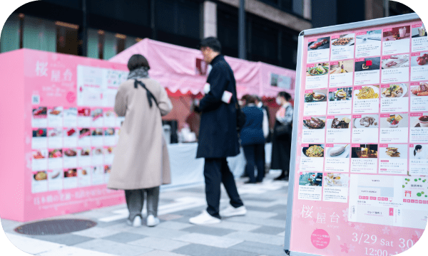 日本橋櫻花祭活動期間,福德之森、仲通與浮世小路等地將設置期間限定的「日本橋櫻花屋台」,集結日本橋地區的老字號餐廳、人氣名店、飯店與商業設施,推出只在這兩天才能品嚐到的特別屋台料理。