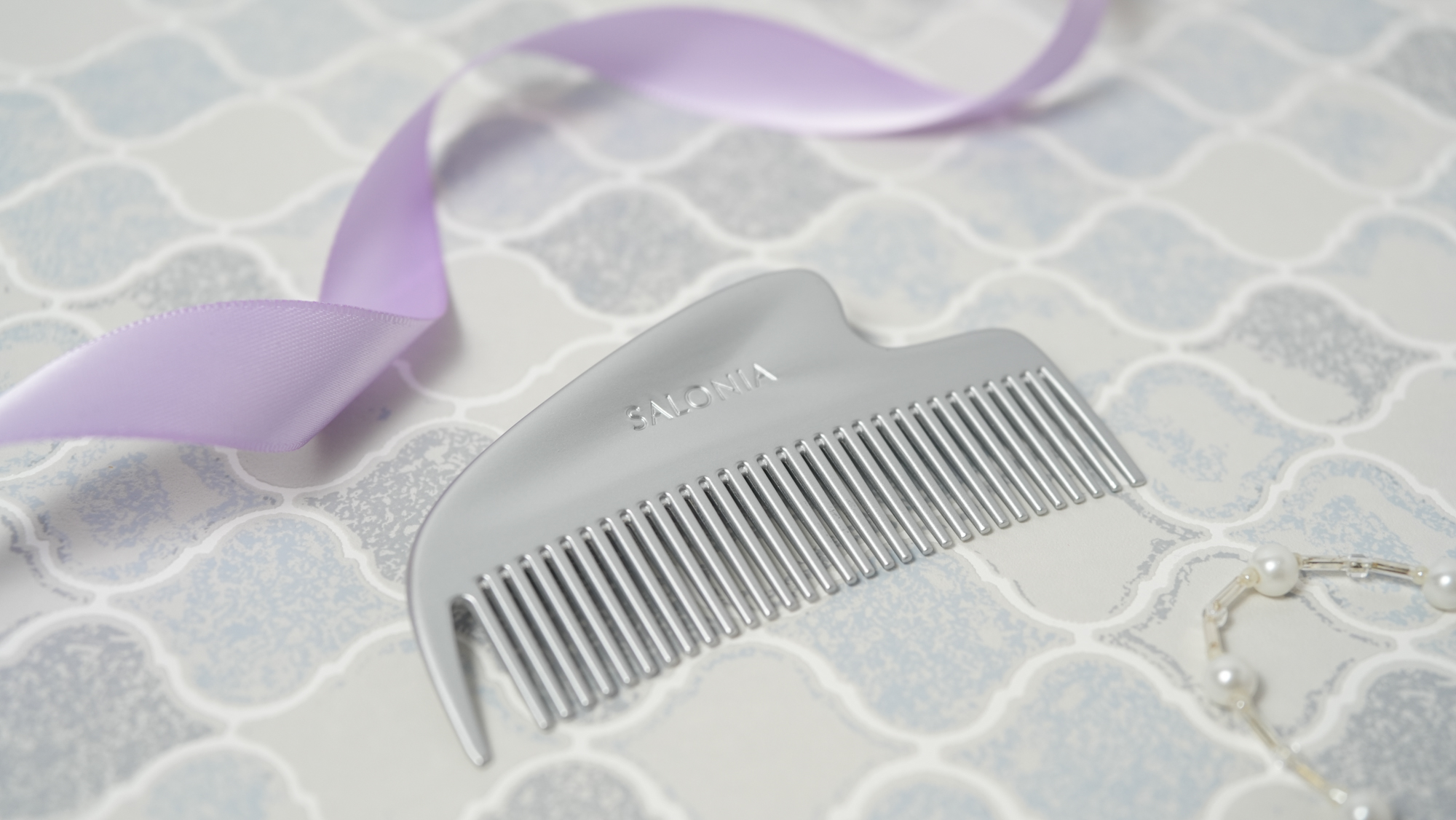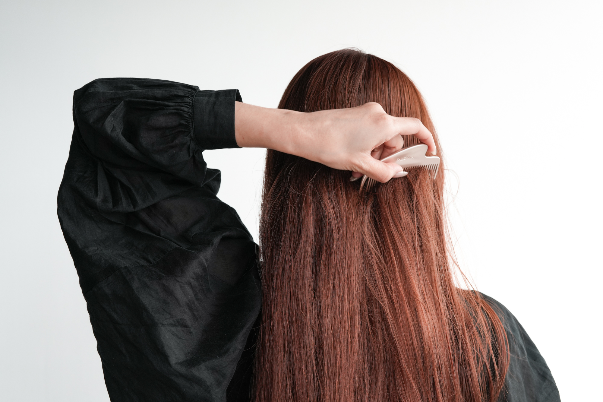 關鍵就在於這把梳子的梳柄部分採用特殊曲線設計,加上金屬的光澤質感,完全可作為簡單的刮痧按摩工具使用。除了頭皮之外,也能沿著臉部邊緣、頸部或手部輕輕帶過,作為日常的物理性提拉保養。平常在辦公室久坐、旅行搭車太久,或是工作之間需要稍微轉換狀態時,隨手拿起來梳整頭髮、順便按壓頭皮,確實很有那種把沙龍放進包包裡的感覺。