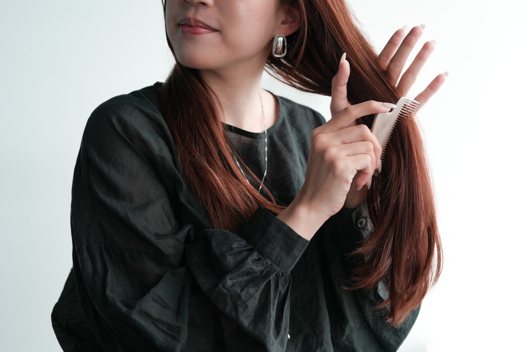 以使用感來說,梳齒滑過頭髮時相對順手,特別是在整理表面毛躁、分線附近碎髮時,能感受到髮流比較容易被帶順。對於平常在意拍照前髮絲蓬亂、頭頂小飛毛不聽話的人來說,屬於很容易立刻派上用場的類型。尤其出門在外,這種能隨手拿出來快速整理的梳子,出場頻率會比想像中更高。