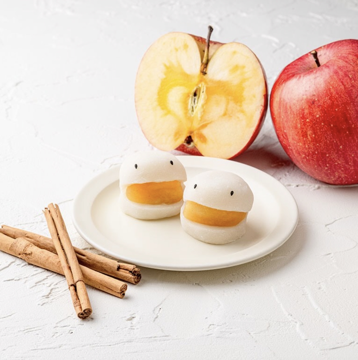其他還有像是肉桂蘋果口味,妖怪大福口中的蘋果可是以砂糖與肉桂熬煮而成,香甜的蘋果充滿著肉桂的香氣,而這款期間限定口味同樣也是以白豆餡為底。