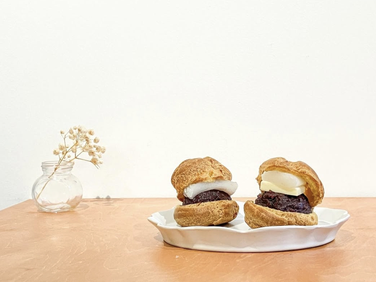 和洋融合甜點:包裹著求肥與紅豆餡的泡芙