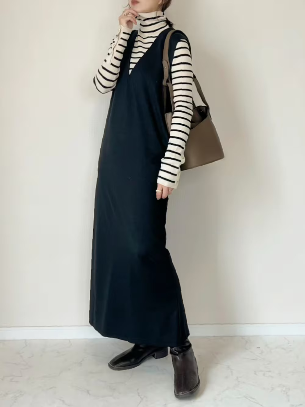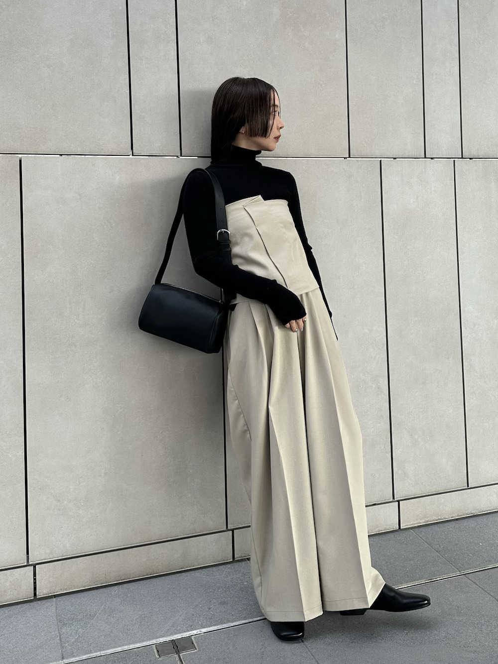 LOOK 04.高領上衣 + 連身設計
