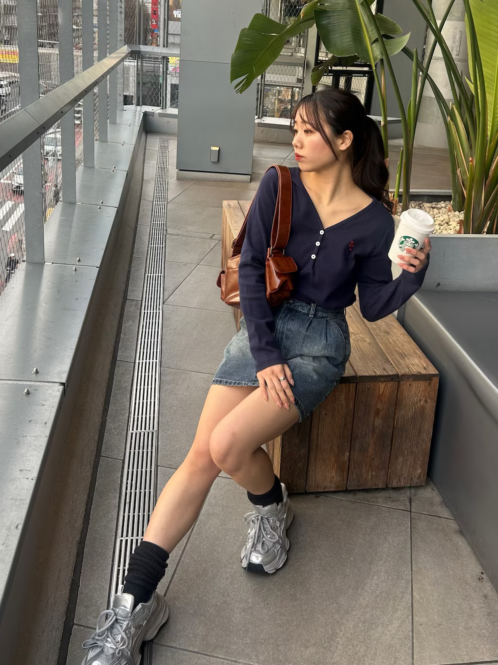當想穿出輕甜可愛氛圍的時候,嘗試以亨利領上衣加上短裙,運用率性與甜美的單品,讓風格撞擊出全新的視覺火花,而短裙可以挑選 A 字裙、百褶裙都很合適,並利用短襪或褲襪加乘,連結好感度滿分的日系印象。