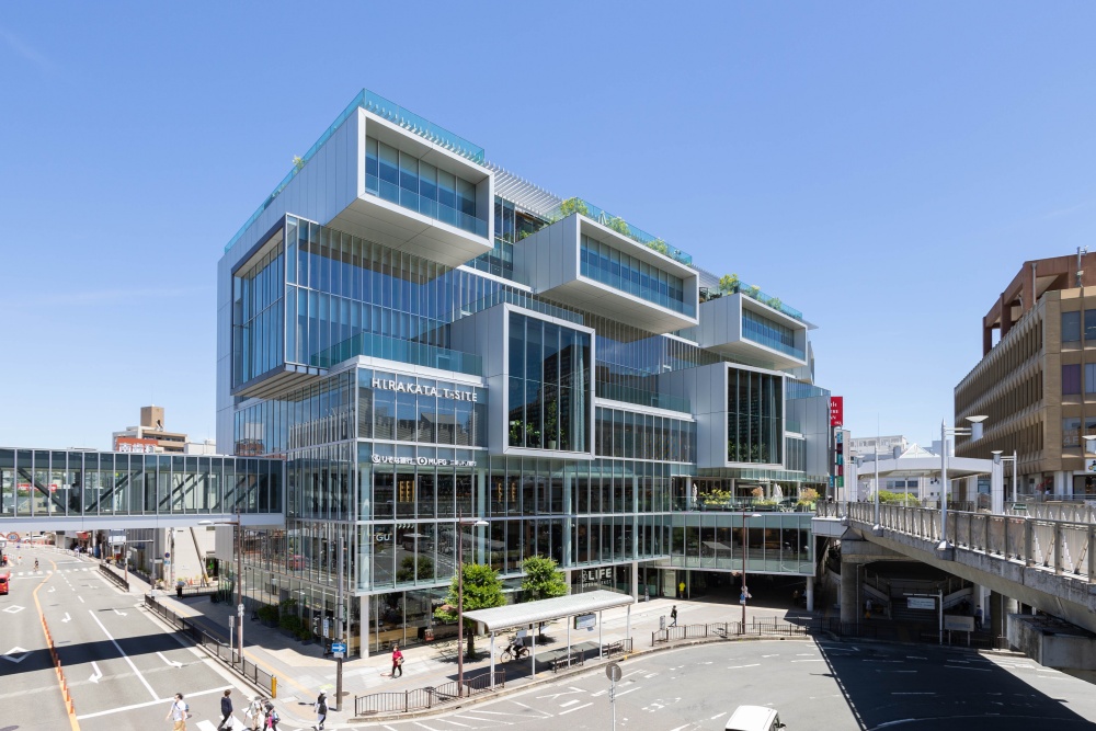 車站旁的枚方 T-SITE 是一棟外觀極具設計感的建築,更是日本知名 TSUTAYA 蔦屋書店的一號店發源地,擁有絕美的挑高書牆與豐富的質感商場,是逛街購物的絕佳去處。