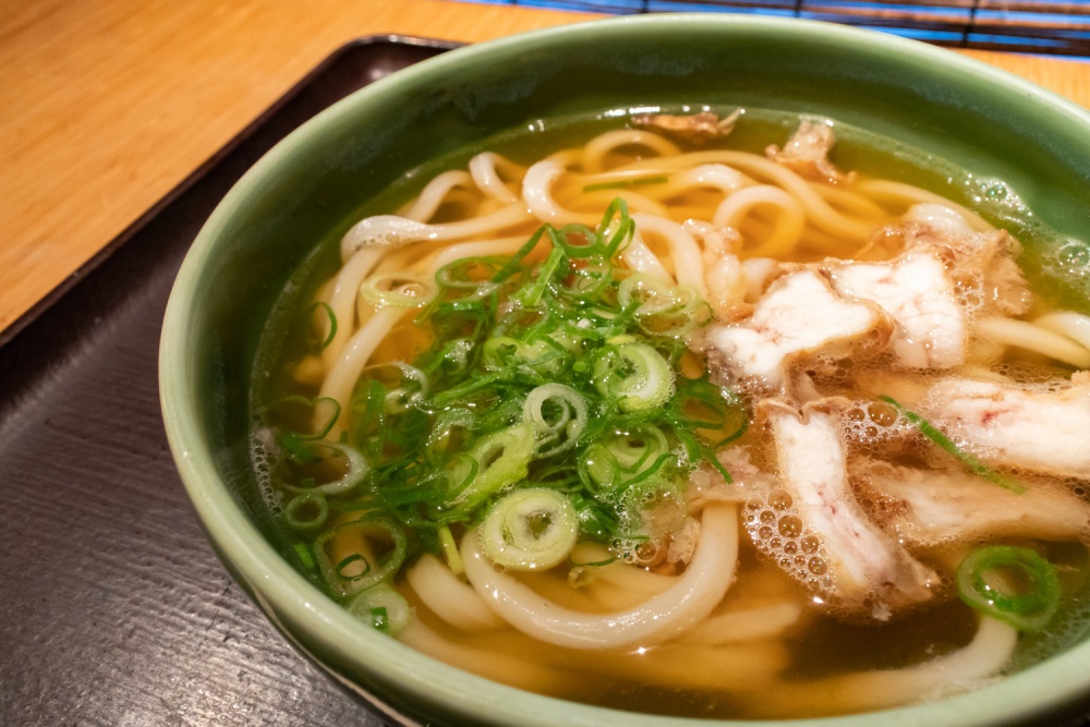 「かす」指的是把牛腸或牛脂肪部位炸過之後留下來的油渣。炸過之後外層會帶點酥香,裡面則保留油脂和膠質,放進熱湯裡之後,香味會慢慢融進湯頭,讓炸牛腸油渣烏龍麵(かすうどん)整碗麵喝起來特別濃郁。