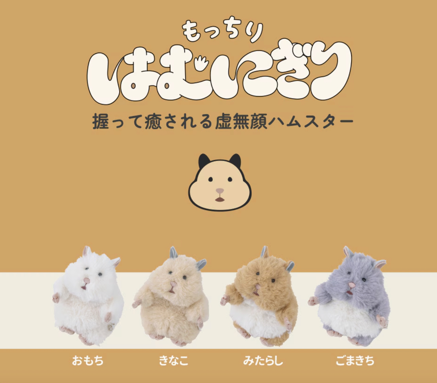 由雜貨用品公司「LIVHEART」(株式会社りぶはあと)所推出的倉鼠娃娃系列「はむにぎり」,有著可愛又仿真的倉鼠模樣,好似真的倉鼠,但又帶點呆萌卡通感,每一隻臉上都掛著呆滯放空的可愛表情,光是看著就讓人感到療癒不已。