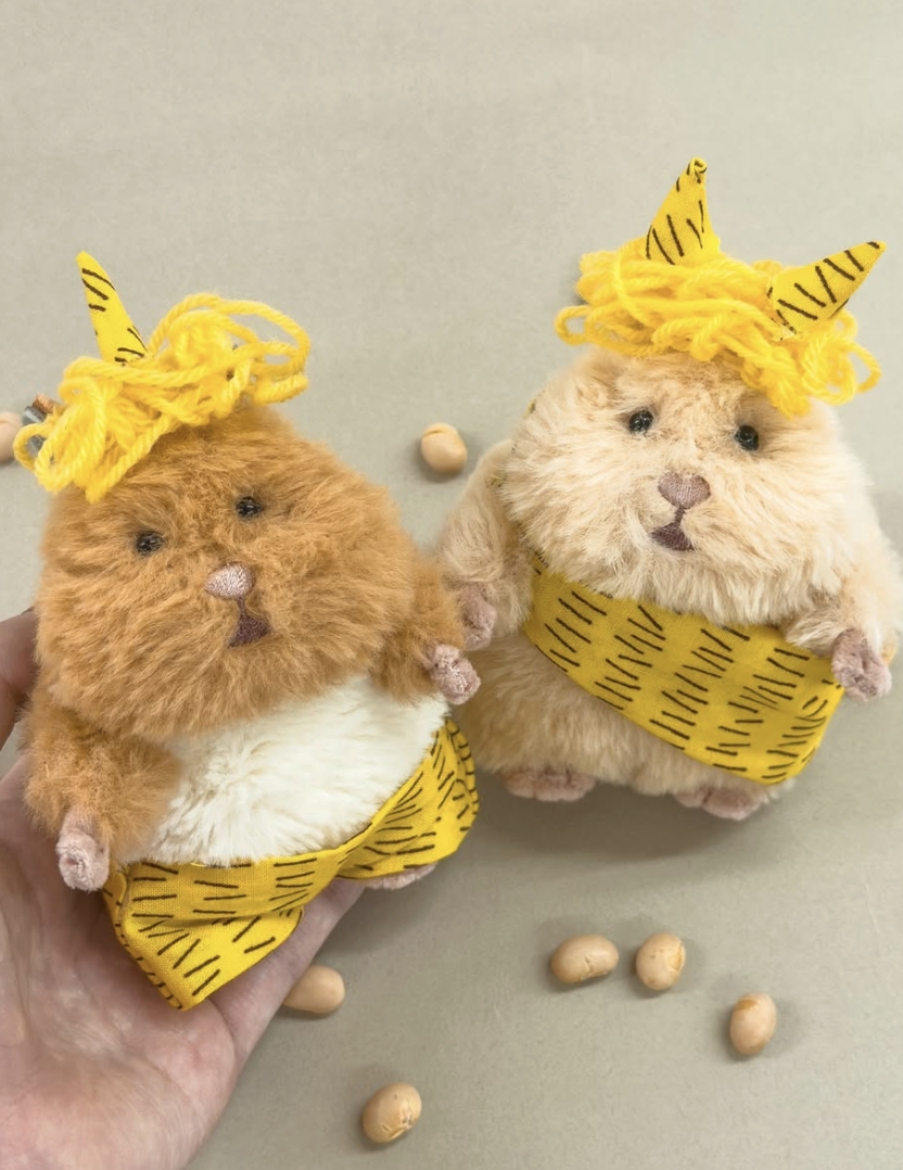 這系列倉鼠娃娃做成適合抓在手上的大小,柔軟富有彈性的觸感,讓人不禁想好好在掌心上揉捏一番。
