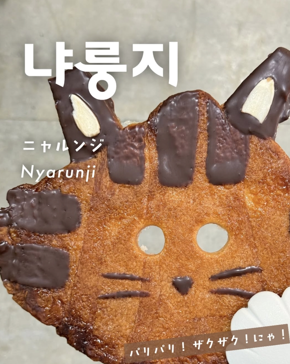 還有前幾年在韓國造成熱潮的扁可頌麵包餅乾,竟也被改造成貓咪造型的版本。