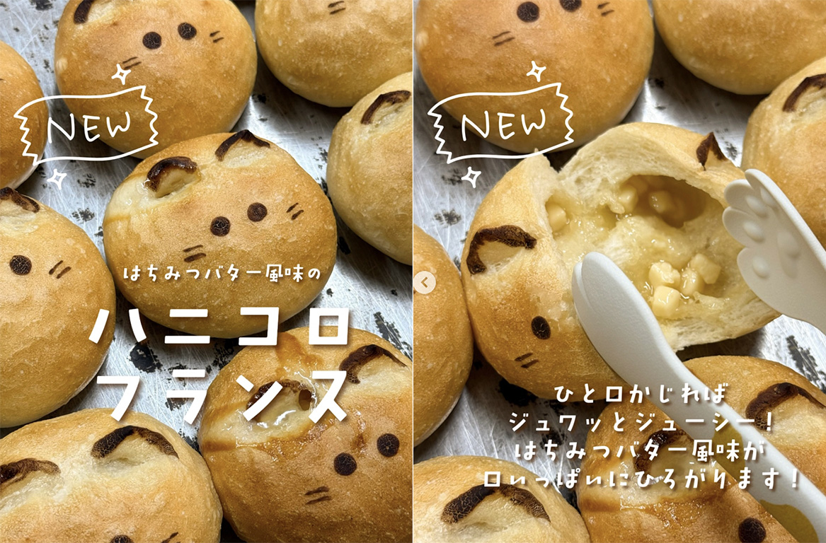 還有包裹著蜂蜜奶油內餡的法國麵包,外型雖不似傳統法國麵包那樣扁長,但圓滾滾的模樣配上貓耳朵,簡直不要太可愛。