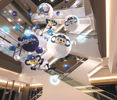 4月23日(四)至6月30日(二)期間,中日大樓館內將以「中日大樓×Doala」原創設計裝飾點綴。包含西北側、西側入口,以及北側、南側手扶梯(B1F~3F)等各處,都能看到Doala迎接大家的到來。在B1F挑高中庭空間,還有以「中日龍隊藍」為主題的Doala藝術氣球飄浮空中,營造滿滿慶典氛圍。