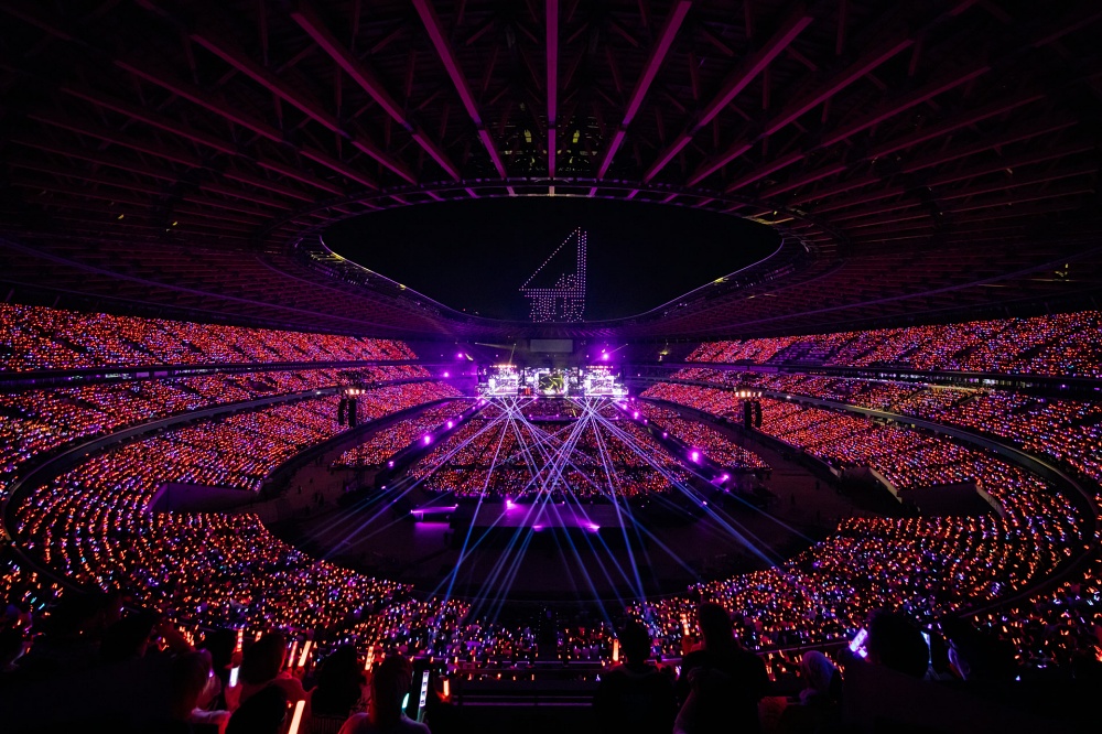 當三期生登場演唱〈靜寂的暴力〉時,全場燈光暗下,7萬名Buddies極有默契地關掉手燈,停止歡呼。偌大的國立競技場陷入黑暗與無聲,只剩一字舞台往中間走去的成員身上微弱的白光,宛如黑暗森林中的小小營火,輻射出強大的魄力。