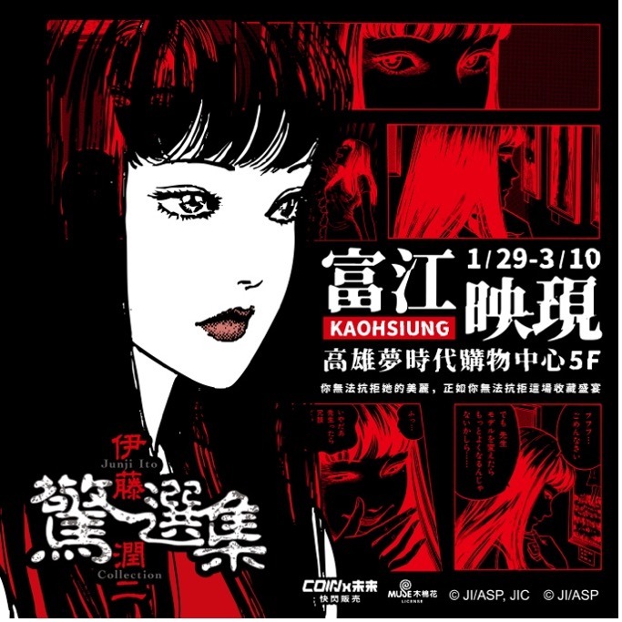 「即便被肢解無數次,我也會再度重生……」,今年過年來點不一樣的年節氛圍!伊藤潤二驚選集《富江映現》快閃店1月29日-3月10日現身高雄夢時代5樓,讓世人瘋狂、擁有致命魅力的神祕少女「富江」將帶著令人發狂的魅惑微笑,在南台灣無限增生!現場打造七大沉浸式拍照打卡點,從宛如踏入異界「被詛咒的雙一教室」,到...